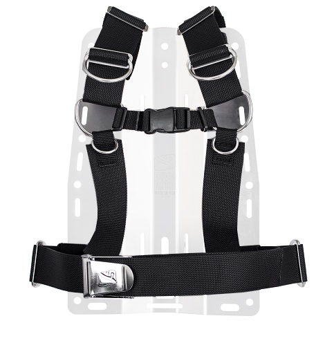 A webbing harness designed for hard backplates that provides comfort and streamlining. Swivel points on the shoulder straps ensure a comfortable fit, which is especially important for women, as well as men with broad shoulders. A chest strap keeps the harness securely in place. Two-inch (50mm) nylon webbing provides strength, yet is soft and won't dig into the body. Harness is adjustable by cutting off excess webbing once diver has sized the harness to his body stature. Standard two-inch webbing allows for customization with a wide variety of pockets and accessories, depending on the needs and desires of the individual diver. Quick Release model also available (BC1080Q). Tubular webbing sleeves are d for all points webbing will come into contact with the backplate to prevent abrasion. Includes marine-grade stainless steel hardware.  Made in the U.S.A.
