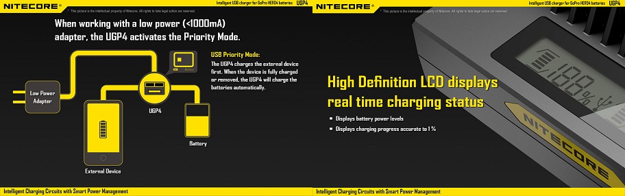 • Intelligent USB charging management system: the charger monitors battery status and adopts the optimal charging modes between CC & CV automatically.