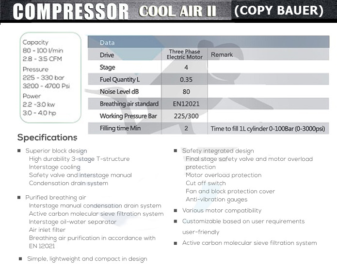 Compressor Cool Air II  (Copy Bauer Junior II) all the same spare part With Bauer compressor.