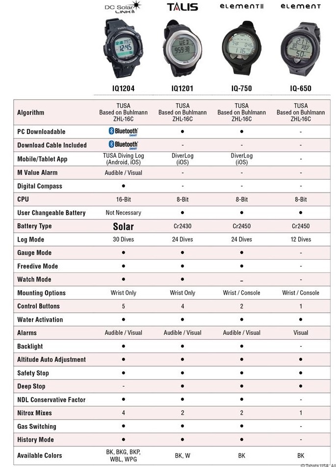 TUSA’s innovations continue to expand with the new IQ-1201 TALIS, an advanced 2-gas watch computer. Highlights of the Talis the new scroll back feature and the dual time display capability. Available in black or white, each unit also s blue and pink side panel options, which allows users to personalize their computer.
