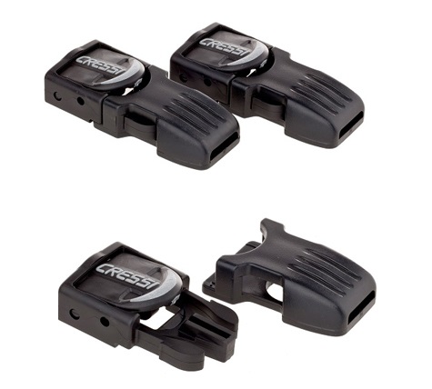 This Cressi Fin Strap Buckle Assemblies Set is a must for the traveling diver. Set s fin strap buckle assemblies for the Cressi Frog, Pro Light and Master Frog Fins (see SKU's; CSBFFP and CSBFPL) Buckles are made from durable corrosion proof impact resistant plastic. Easy to install on fin and strap. Each buckle consists of a male and female assembly.