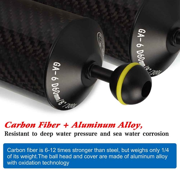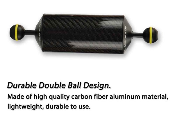 • Carbon Buoyancy Tube fits on your underwater photography arms to provide a more neutrally buoyant system.