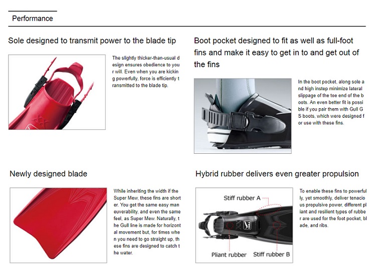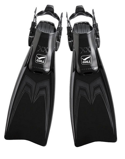 Maximizing the resilient properties of rubber, the Super Mew is the most powerful strap fin for scuba diving and skin diving.