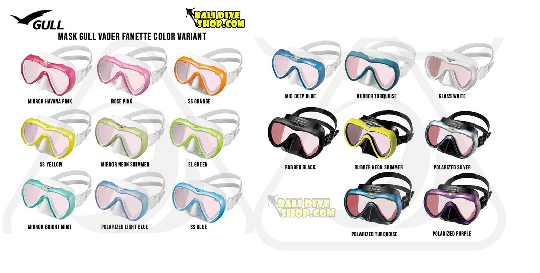 The Gull Vader Fanette is one of the latest product by Gull in 2017. Our first impression of it, was that it definitely feels lighter than the regular Gull Vader Mask, thinner silicone for excellent sealing, smaller in volume, with an orange pinkish front coating, with the regular amber rear coating for light and colour amplification.
