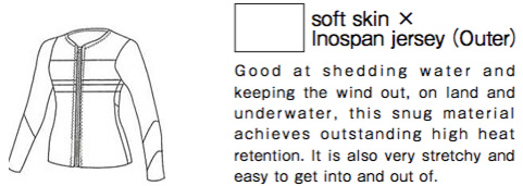 On the outside, the surface is covered with Inospan jersey, which has superb durability and more than five times the stretchability of normal jersey.