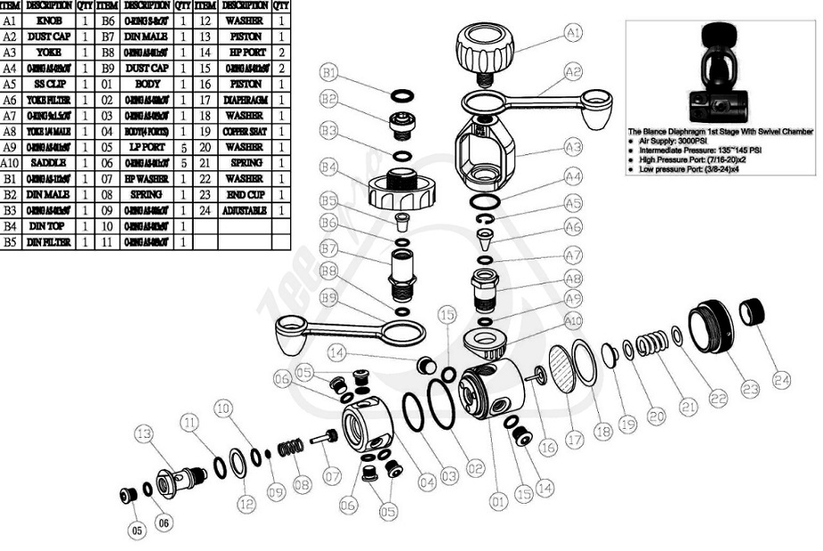 Regulator 1st Stage Diaphragm ZeePro (Din)