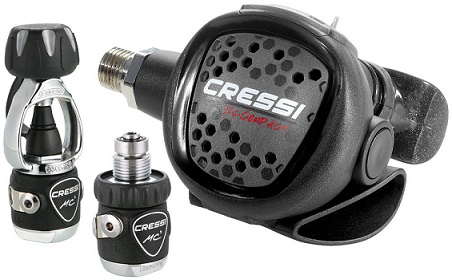 REGULATOR 1ST STAGE CRESSI MC5 YOKE + OCTOPUS 2ND STAGE CRESSI COMPACT + LP HOSE 2ND STAGE RUBBER BLACK