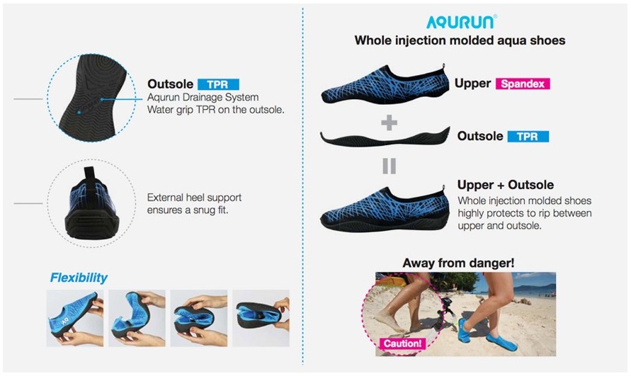 The spandex texture has good drainage and is well ventilated. Protects your feet from the gritty sand and prickly stones and corals.
