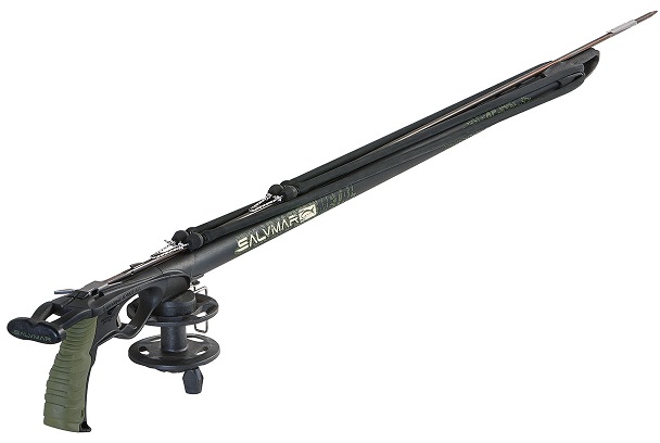 Gun has a removable chest loading butt pad and comes with Salvimar's stock vertical mount reel.