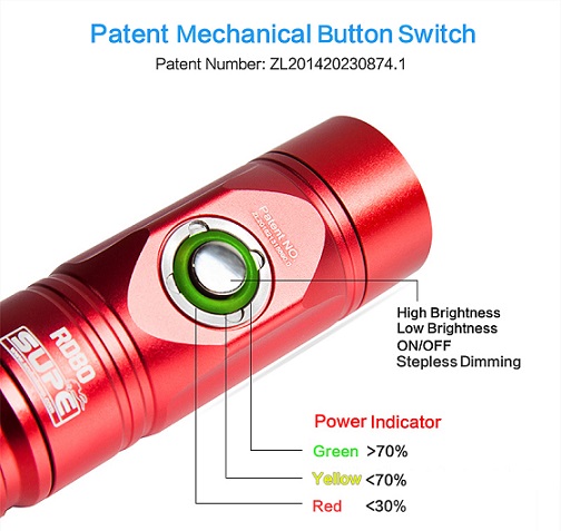 • Burn Time : 1.6 Hours at high mode , 3.2 Hours at low mode, 8 Hours at SOS mode