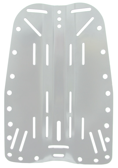 The back plate is the heart of a technical buoyancy compensator. It provides the vital connection between a diver and his scuba. Individually press-formed and all edges de-burred, Oceanpro back plates have 5cm (2”) slots for the harness and crotch strap as well as 10 perimeter holes for attaching additional equipment such as stage bottles and canister torch. There are 3 sets of tank mounting holes along the plate’s center line, giving the diving easier option to fine tune tank to torso position.