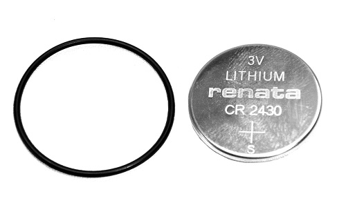 Battery kit for mundial computer. Includes 3V Lithium Renata CR2430 battery and Corresponding O-Ring