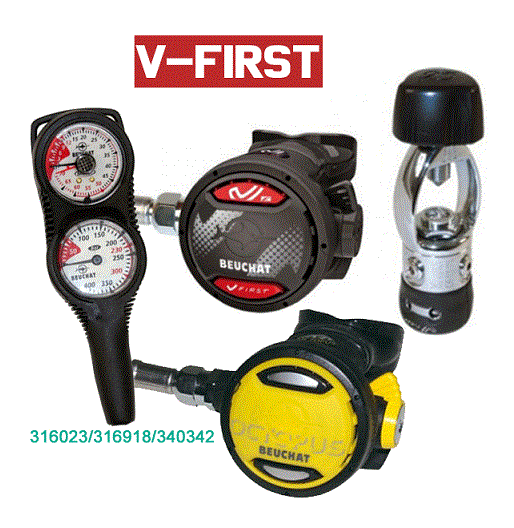1. REGULATOR 1ST STAGE BEUCHAT V FIRST YOKE + OCTOPUS 2ND STAGE BEUCHAT V FIRST + LP HOSE 2ND STAGE RUBBER BLACK