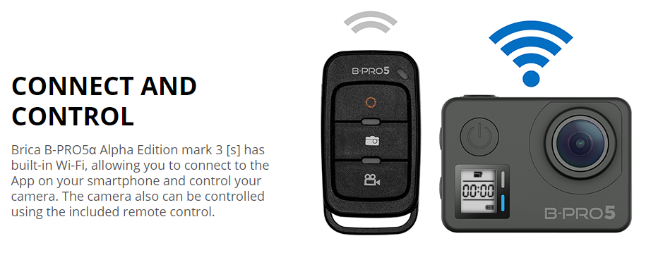 Brica B-PRO5α Alpha Edition mark 3 [s] has built-in Wi-Fi, allowing you to connect to the App on your smartphone and control your camera. The camera also can be controlled using the d remote control.