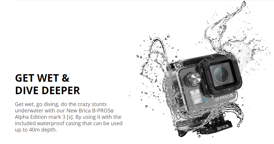 Get wet, go diving, do the crazy stunts underwater with our New Brica B-PRO5α Alpha Edition mark 3 [s]. By using it with the d waterproof casing that can be used up to 40m depth.