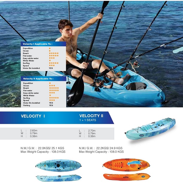 VELOCITY I - CANOE SEABEE SINGLE + PADDLE (265CM X 79CM)