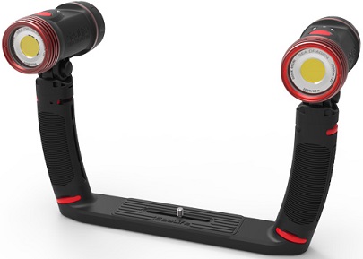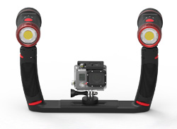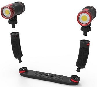 The Sea Dragon Duo 5000 s Flex-Connect Dual Tray, two Grips, and two powerful Sea Dragon 2500 lumen COB LED lights