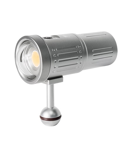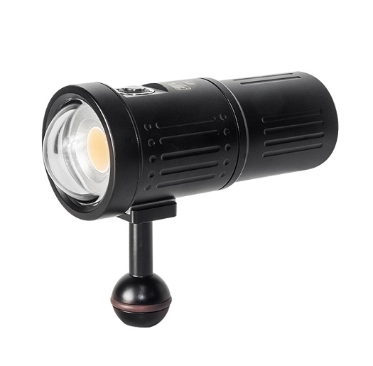 This only 135mm long light unit is a smaller sibling of the Scubalamp V4K and V5K video lights. It boasts 5000-lumen maximum output from its advanced COB LED light source. This machined aluminum-bodied light also features a glass dome port that maintains the super-wide beam in water.