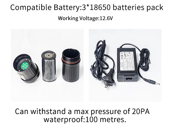 • Battery: User repleacable 3x18650 Li-ion pack
