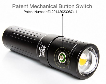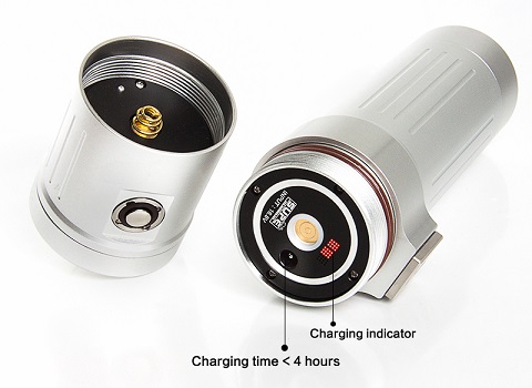 The rendering index (CRI = Ra96) is very close to sunlight (noon). These new underwater video lights do not produce a multi-shadow effect. Rechargeable Li-ion battery. Practical, even with the thickest gloves operated dimming knob allow easy operation with just one hand. The remaining running time is displayed by means of color at the button.