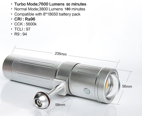 COB Torch V4K-Pro ScubaLamp Wide Angle (7600 Lumens)