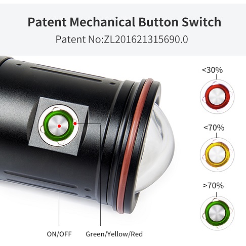 • Switch: Patented mechanical push button
