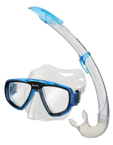 SEAC Set Tris Spinta Aquamarine Mask Fins and Snorkel, Feature Set consisting of spinta fins, extreme mask and snorkel
