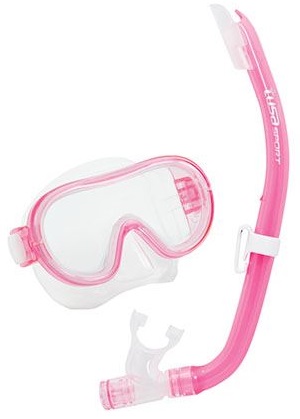 The UC-1214 Mini-Platina mask and snorkel combo a low volume 1-window mask with enhanced vision, EZ adjust buckle technology, ClearVu tempered glass lens and pure silicone skirt and strap.  The snorkel features TUSA Hyperdry technology that reduces water flow into the snorkel and silicone mouthpiece.