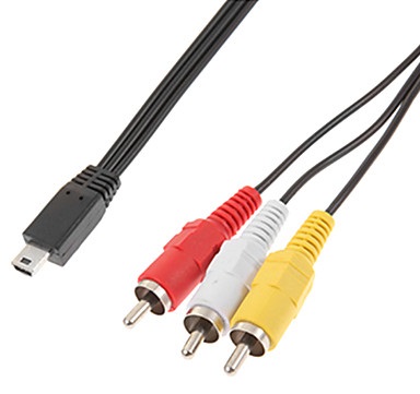 Kabel Mini USB ke RCA. Dapat digunakan untuk menghubungkan kamera GoPro Hero 1 dan berbagai macam jenis gadget lainnya yang support koneksi Mini USB ke RCA.