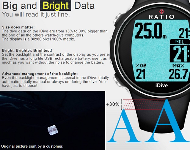 The dive data on the iDive are from 15% to 30% bigger than the one of all the others watch-dive computers.