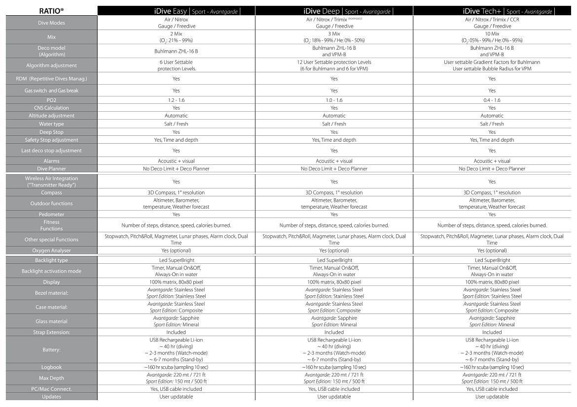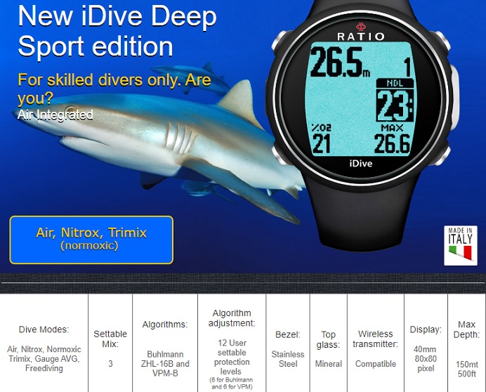 New iDive Deep Sport edition (Deep) = 3 Mix (Air + Nitrox + Trimix (normoxic))