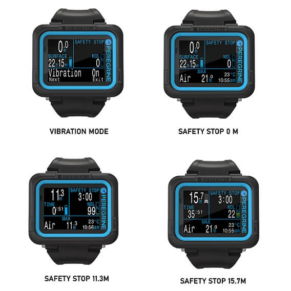 Cold water drysuit divers will appreciate its vibration alarms. For divers looking to customize, additional straps can be purchased in Ocean Blue and White.