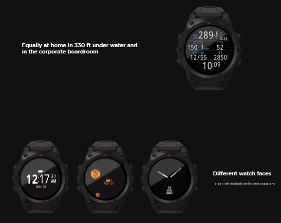 You can choose the colour scheme and layout of the screen both as a normal wrist watch for the surface and under the water.