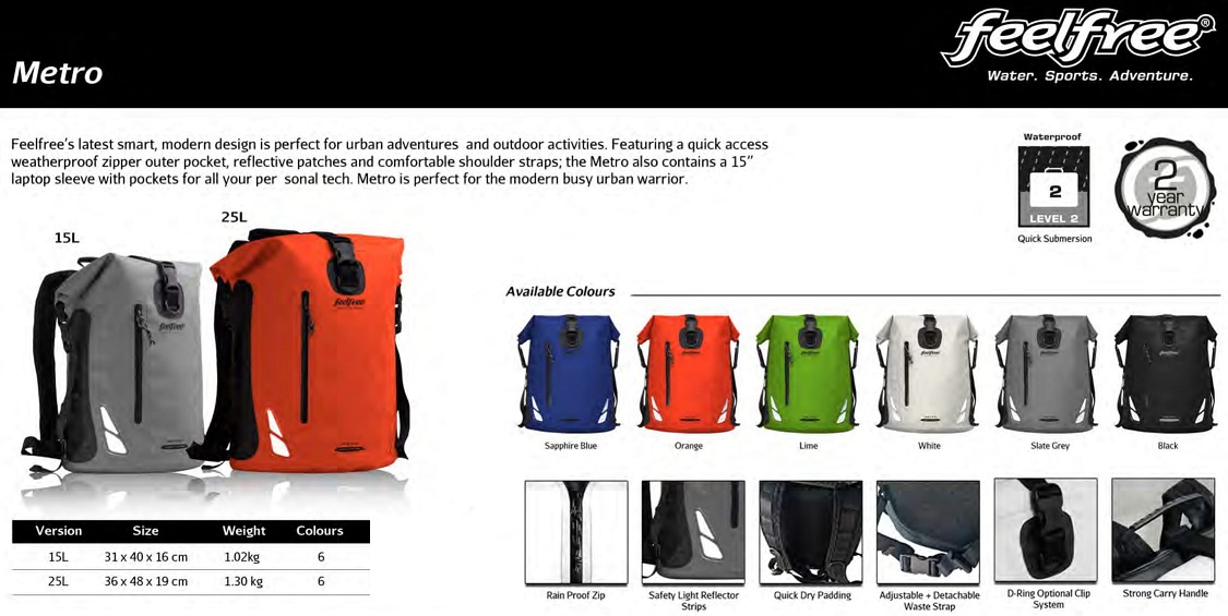 Equally as suitable for your daily commute as for your evening or weekend outdoor activities, the smart design Feelfree Metro is made for the busy urban warrior.