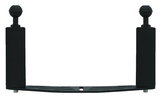 Improve balance and handling while capturing images beneath the surface with Bigblue's Large Camera Tray with Dual Grips, which is designed to hold a housed camera and two arms for strobes or video lights. With an 8" gap between the handles, the tray can accommodate large camera housings. The neoprene grips afford long-term comfort, and feature 1" ball mounts on top for the attachment of arms via the d CLP-02 clamps. Additionally, the balls have O-rings that prevent slipping and allow the clamps to maintain a better hold with less force. Built for extreme durability, the tray base and handles are made from an aluminum alloy that has been anodized to resist corrosion.