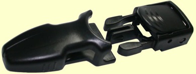 • The plastic clips have both the male and female part of the buckle d. The female piece clips onto the fin permanently and the male part is designed to remain on the strap.