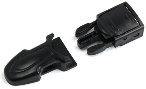 • The plastic clips have both the male and female part of the buckle d. The female piece clips onto the fin permanently and the male part is designed to remain on the strap.