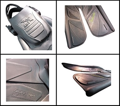 • The fin is made from specially formulated thermal plastic rubber, which is then fine-tuned to give an excellent balance between flexibility and rigidity.