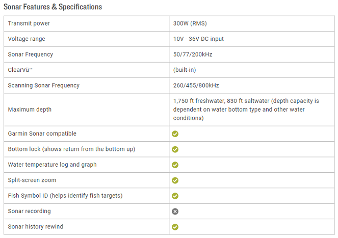 SONAR FEATURES & SPECIFICATIONS :