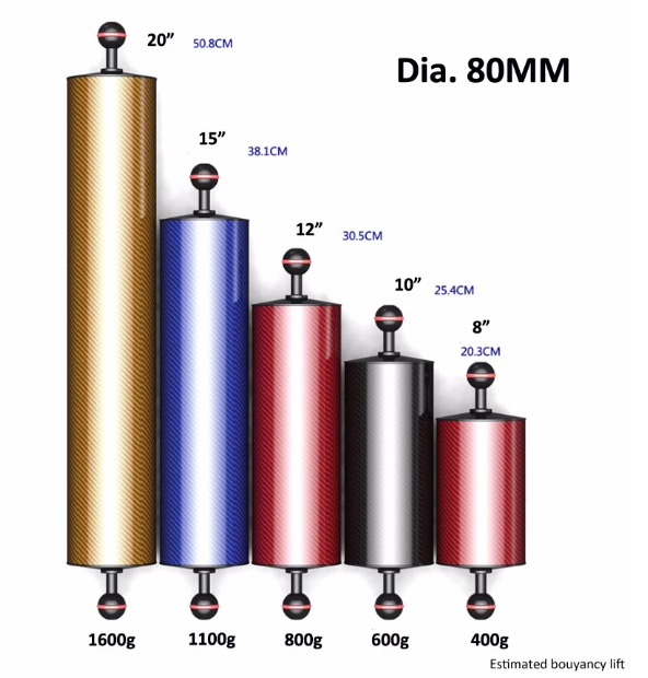 • Carbon Buoyancy Tube fits on your underwater photography arms to provide a more neutrally buoyant system.