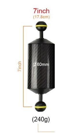 • Carbon Buoyancy Tube fits on your underwater photography arms to provide a more neutrally buoyant system.