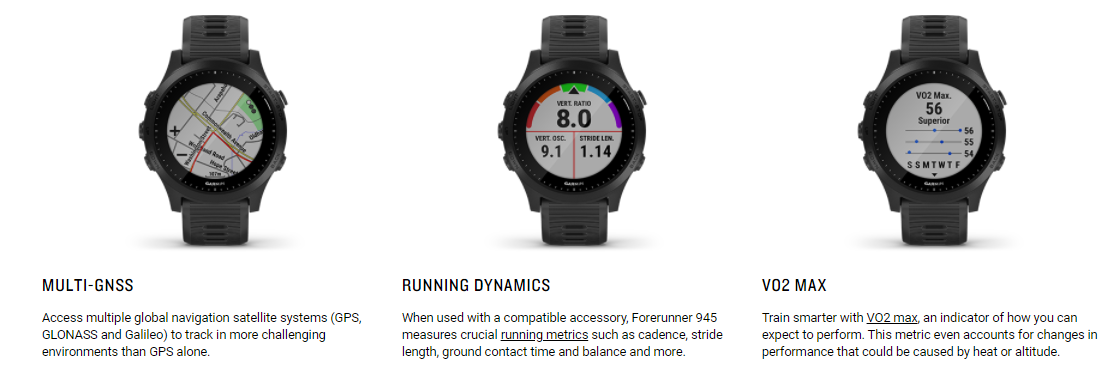 • Forerunner 945 is miles ahead of the competition with a high-performance silicone band and an ultra-durable Corning® Gorilla® Glass DX lens.