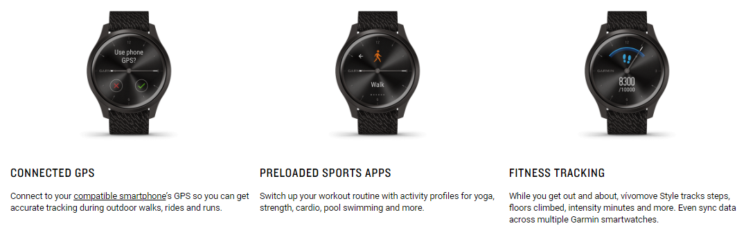 • Available in a variety of designs, vívomove Style features an aluminum watch case with a satin finish and domed Corning® Gorilla® Glass for a chic, durable design. And it’s compatible with industry-standard 20 mm quick release bands.
