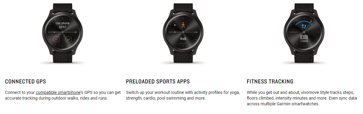 • Available in a variety of designs, vívomove Style features an aluminum watch case with a satin finish and domed Corning® Gorilla® Glass for a chic, durable design. And it’s compatible with industry-standard 20 mm quick release bands.