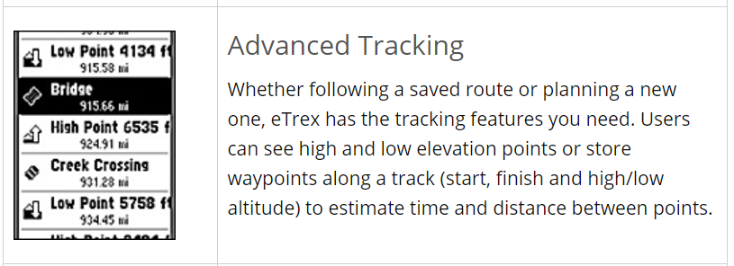 • Wireless capability to share waypoints, routes and geocaches with other similar devices