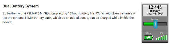 With its quad helix antenna and high-sensitivity, GPS and GLONASS, receiver, GPSMAP 64s SEA locates your position quickly and precisely and maintains its location even in heavy cover and deep canyons. The advantage is clear — whether you’re in deep woods or just near tall buildings and trees, you can count on GPSMAP 64s SEA to help you find your way when you need it the most.