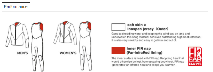 On the outside, the surface is covered with Inospan jersey, which has superb durability and more than five times the stretchability of normal jersey.