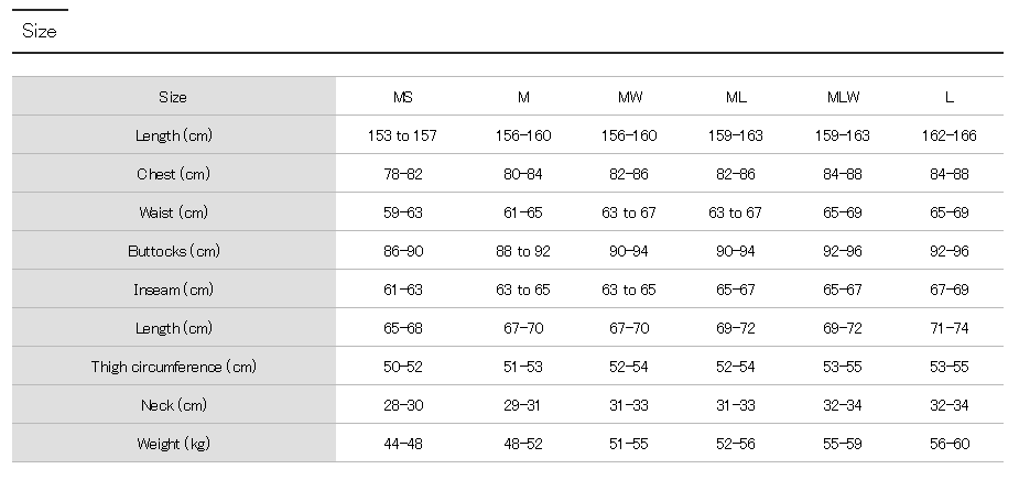 READY SIZE : M, ML, L