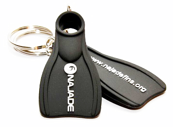 The best way to accessorise your keys! A swimming fin style key ring, made of rubber, in the shape of the increasingly popular NAJADE Fins and with a solid metal key ring.