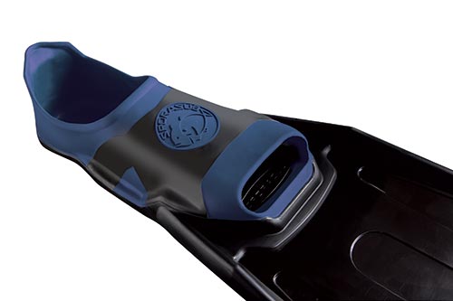 This fin won’t tire out the legs, even after hours of use. The blade is thinner and 5.5 cm shorter compared to the standard spitfire blade, and the standard spitfire it is equipped with 2 water rails to prevent the water skidding effect.